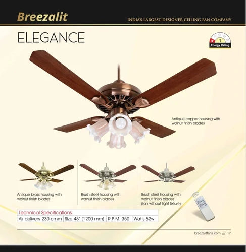 • Antique copper housing with walnut finish blades